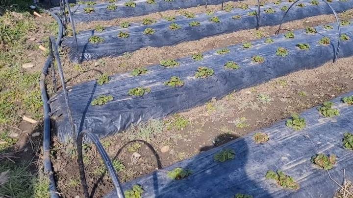 Он строится уже поверх высаженных кустов клубники под чёрным укрывным материалом. Конечно, перед этим следует провести все подготовительные работы, в том числе внесение удобрений и обработка от вредителей.