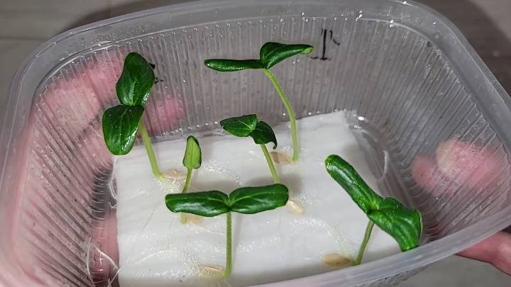 Урожай начинается с выбора сорта. Используйте проверенные гибриды. Одним из них является «Любимчик» — стабильно урожайный и вкусный сорт. Для выращивания в домашних условиях хорошо подойдёт «Лихач» и «Крош». В контейнер положите бумажную салфетку, смочите водой и высадите семена. Накройте крышкой и поставьте в тёплое, светлое место. Очень быстро семена прорастут, и их нужно будет пересадить в землю. Не бойтесь поломать корневую систему: у огурцов она на удивление прочная.