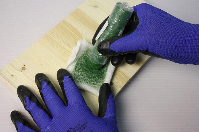 3. Медленно поводите наждачкой назад и вперёд по царапине, мягко зачищая и шлифуя повреждённый участок.
