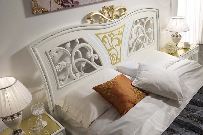 В 2000-х годах, когда появился тренд на «дорого-богато», в моду вошли кровати со сложным, вычурным изголовьем. После изрядно надоевшего аскетизма советской обстановки, люди стремились к роскоши, старались с помощью интерьера квартиры продемонстрировать высокий статус и положение в обществе. Однако в случае с хрущевками подобные попытки выглядели, скорее, нелепо, чем изысканно. Особенно, когда в крохотную спальню с низкими потолками пытались втиснуть огромную кровать с резным изголовьем, пышным декором и позолоченными элементами.