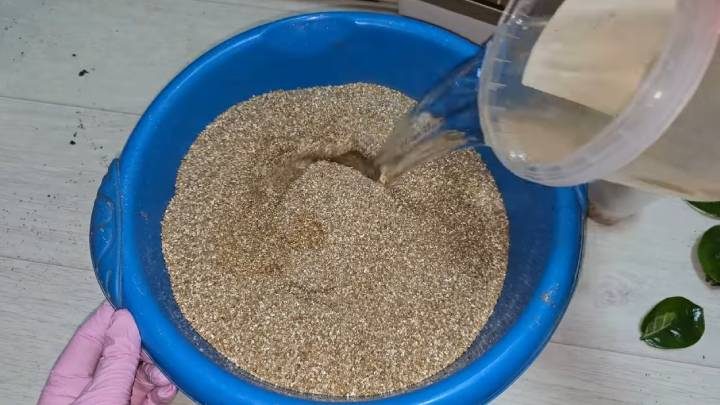 Укоренять будем в вермикулите. Корешки появляются в 2-3 раза быстрее! Однако здесь обязательно нужна подкормка. Возьмите удобрение с формулой 13-40-13, разведите в воде, согласно инструкции, и пролейте вермикулит.