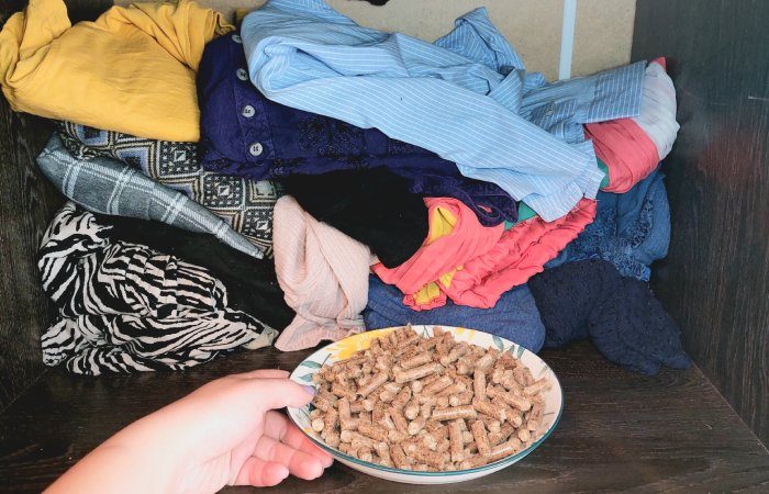 Неприятный запах может поселиться даже в шкафах самой опрятной хозяйки. Спасет от этого очень простое средство — наполнитель для кошачьего туалета. Он прекрасно впитывает влагу и посторонние запахи, главное менять содержимое раз в несколько месяцев.