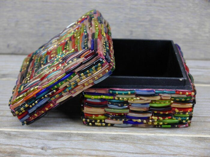 А ещё остатками или осколками плитки можно украсить шкатулку.
