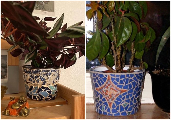 Оставшейся плиткой можно декорировать цветочные горшки.