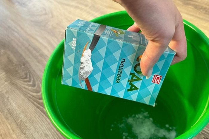 Насыпьте небольшое количество соды в ведро.