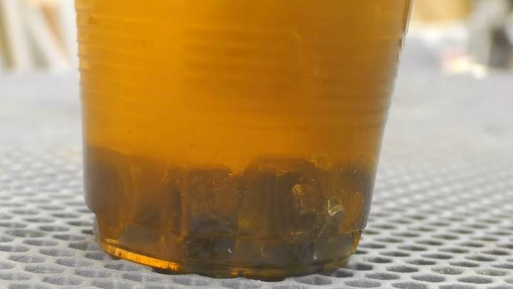 Уже через 20 минут можно наблюдать такую картину (см. фото ниже). Раствор окрасится в тёмно-жёлтый цвет.