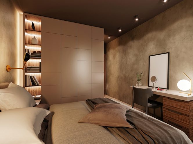 В детской визуальный шум создают игрушки, в спальне даже в красивых дизайнерских интерьерах не всегда понятно, куда убирать покрывала, декоративные подушки с кровати. Главное же — это одежда. Необходима гардеробная с продуманной системой хранения, размер ее должен соответствовать количеству вещей. Если не все входит — нужно избавиться от лишних вещей либо предусмотреть дополнительное пространство для их размещения.