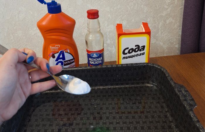 Просто следуйте простому рецепту: смешайте две ложки соды, две ложки чистящего средства и две ложки уксуса. Полученную смесь нанесите на противень. Добавьте к смеси кипяток и подождите пять минут. Пройдясь по поверхности щеткой, вы увидите, как все загрязнения легко уходят. Этот метод эффективен даже для очень грязных противней, а также помогает избежать использования агрессивных химических средств.