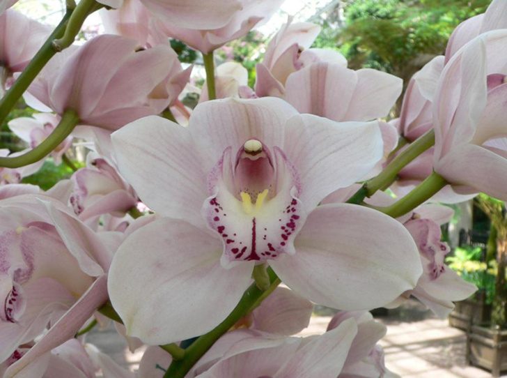 Красота цветения орхидей, по утверждению психологов, может излечить депрессию. Кроме того, эти цветы не вызывают аллергию. Цимбидиум, возможно, один из самых красивых сортов орхидей. Внешне он сильно выделяется своими большими зелеными листьями. В отличие от фаленопсиса цимбидиум нуждается в частом поливе и любит «проявлять характер». Для цветения растению необходим перепад дневных и ночных температур. Оно любит прохладу зимой, поэтому его можно смело ставить на застекленный теплый балкон.