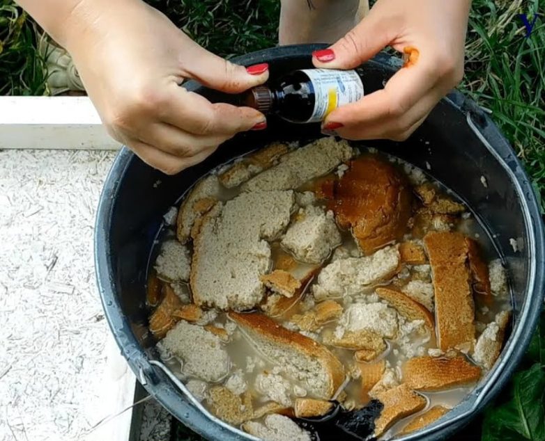 В хлебе содержатся углеводы, которые послужат питанием для почвенной микрофлоры, что сделает почву более плодородной. Также в хлебе содержится белок и различные микроэлементы, которые необходимы растениям: селен, натрий, марганец, железо, фосфор, витамины группы В.Необходимые ингредиенты: