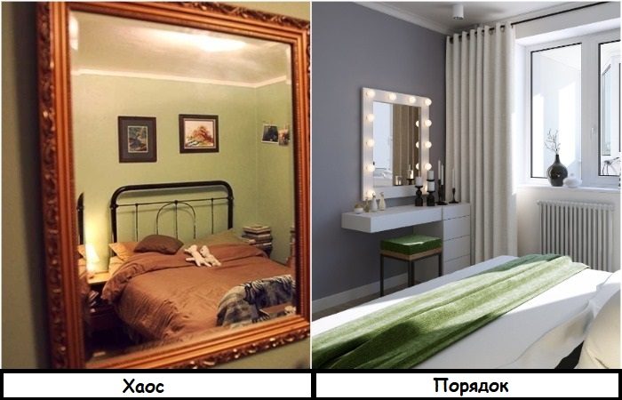 Не размещайте зеркало напротив кровати