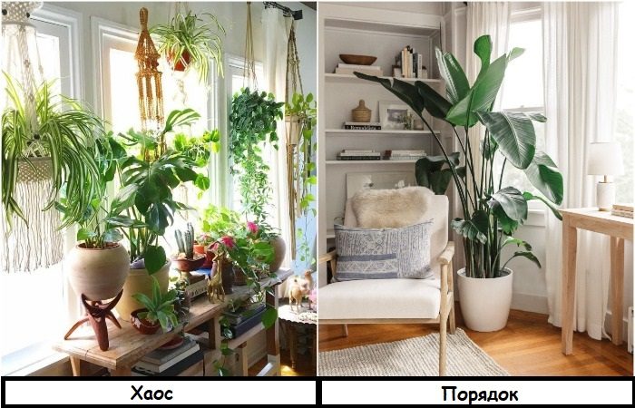 Однако во всем важна мера. Если вы не смогли вовремя остановиться, и комнатные растения разрослись в настоящие джунгли, об аккуратном и опрятном виде квартиры смело можно забыть. Со временем цветы начнут оплетать своими побегами мебель и стены, портить поверхности. Кроме того, квартира визуально станет выглядеть маленькой и захламленной.