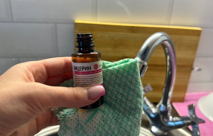 Глицерин обладает свойством предотвращать образование известкового налета, благодаря чему кран будет долгое время оставаться чистым и функциональным. Для этого достаточно нанести несколько капель глицерина на места, где обычно образуется налет, и распределить его равномерно по поверхности крана. Этот простой бытовой совет поможет сохранить кран в идеальном состоянии, экономя время и усилия на частую очистку.