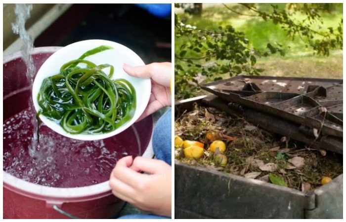 Очень просто сделать самодельную жидкую подкормку для роз. К примеру, из морской капусты. После любой готовки мяса, птицы, рыбы, сгружайте в ведро все отходы, разводите в воде и поливайте розы. Особенно хорошо будет, если там как можно больше остатков костей и крови.