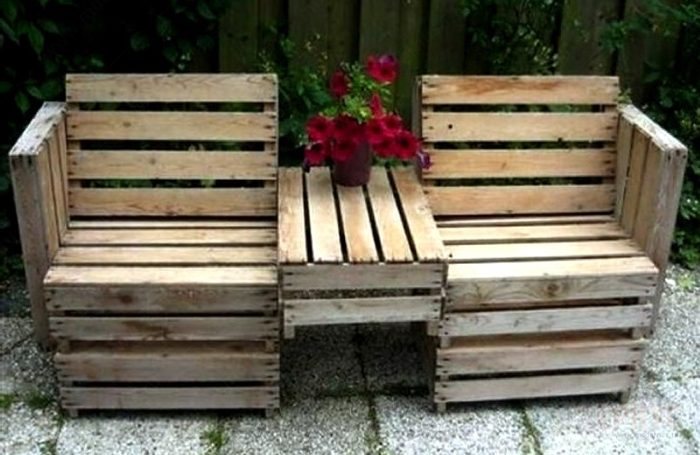 Простой и креативный способ создать скамейку — использовать деревянные ящики.