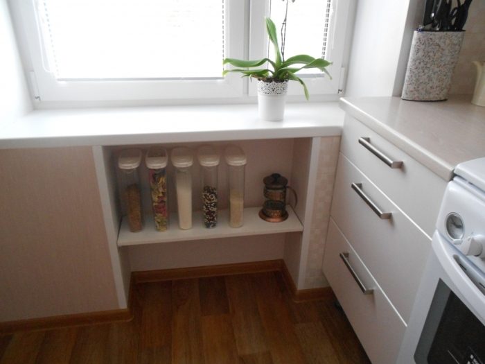 Установка кухонных шкафчиков под окном может стать практичным и эффективным способом увеличить пространство для хранения вещей на маленькой кухне. Окно наверху обеспечивает естественное освещение и прекрасный вид, а шкафы внизу можно использовать для хранения посуды, кухонных принадлежностей, консервов и других предметов. Кроме того, если расположить столешницу\подоконник над шкафчиками, можно увеличить рабочее пространство для приготовления пищи. Такое сочетание шкафчиков и столешницы под окном позволяет максимально эффективно использовать ограниченное пространство на компактной кухне.
