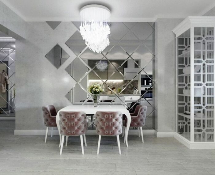 Зеркальная стена — не менее оригинальное решение для создания иллюзии просторного пространства.