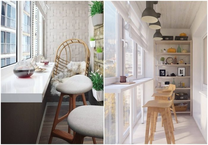 Широкий подоконник можно использовать в качестве барной стойки для завтрака, установив несколько высоких табуретов. Это не только освобождает место, но и обеспечивает дополнительное место на компактной кухне. Таким образом вам не придётся ломать голову над тем, где разместить внезапно нахлынувших гостей или быстренько перекусить, пока кухонный стол занят.
