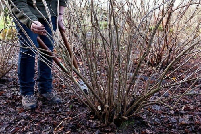Опознать возраст ветвей несложно. Чем старше побег, тем он темнее и тем больше у него разветвлений относительно первоначальной почки. Критически важно отличать старые и молодые побеги, так как обрезаются они по-разному. Так, «нулевые» побеги (появившиеся в этом году) вырезаются полностью под корень за исключением тех, что выглядят самыми сильными. У сильных «нулевых» отрезаем только макушки для дальнейшего разветвления ветки. В свою очередь при обрезке старых побегов, сначала удаляем из куста перекрещивающиеся ветки, а также ветки касающиеся земли (вне зависимости от возраста последних). В дальнейшем удаляем ветки стараясь максимально приблизить состояние к правилу «15». Выбирая между старыми и молодыми ветвями, сохранять в первую очередь стараемся «молодняк».