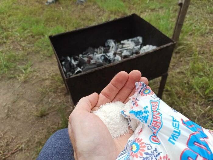 Доморощеным воспламенителем сделали угли для картошки в дождь и ветер.
