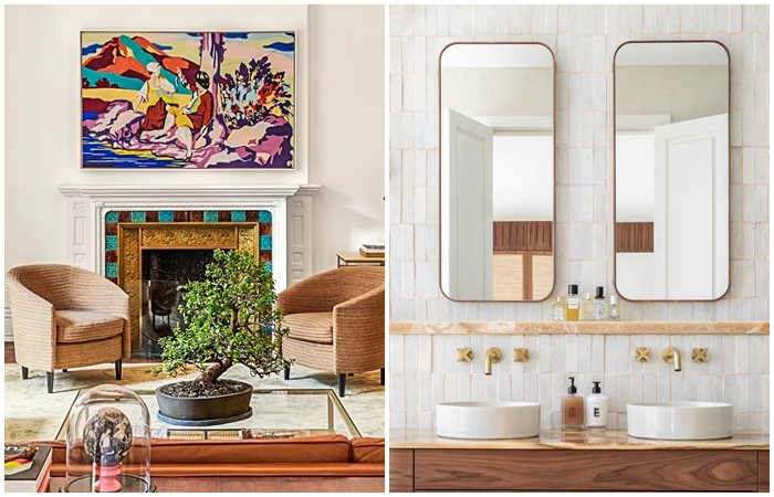 Самые популярные идеи декора ванной комнаты включают растения, установку зеркала в раме или с полкой, добавление настенных рисунков, размещение колец для полотенец или крючков для хранения, добавление декоративного коврика или дорожки на пол. Добавьте свечу или диффузор для создания приятного аромата, а также украсьте туалетный столик или полку контейнерами для хранения ванно-банных мелочей и средств гигиены.