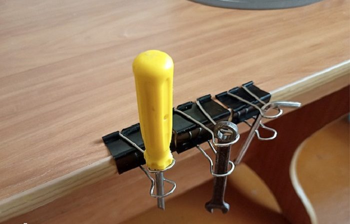 Лайфхак 6: Сделайте органайзер для инструментов из канцелярских зажимов