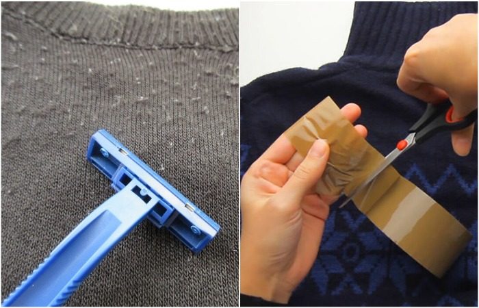 Лайфхак 3: Уберите катышки на одежде бритвы или скотчем