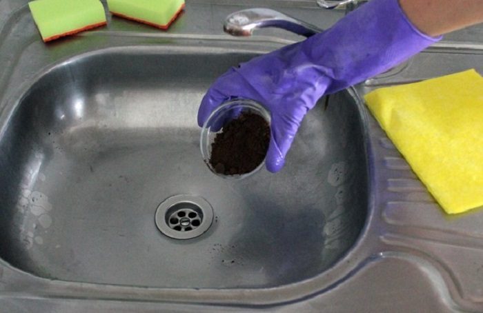 Если вы заметили, что вода в раковине на кухне или в ванной стала плохо стекать, самое время прочистить трубы. Если засор несильный, решить проблему сможет кофейная гуща, так как она хорошо растворяет жир. Засыпьте несколько столовых ложек в сливное отверстие и залейте кипятком. По истечение получаса промойте трубу горячей водой и наслаждайтесь результатом.