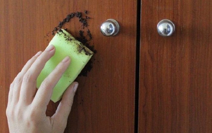 Если в квартире есть деревянная мебель, наверняка время от времени на ней появляются потертости и царапины. Некоторые хозяйки скрывают их от любопытных взглядов с помощью грецкого ореха, мы же предлагаем использовать кофейную гущу. Смешайте три столовых ложки жмыха с небольшим количеством воды, чтобы получилась смесь, по консистенции напоминающая пасту. Нанесите ее на поврежденные участки, аккуратно потрите губкой и оставьте на 10-15 минут. Затем уберите остатки гущи салфеткой.