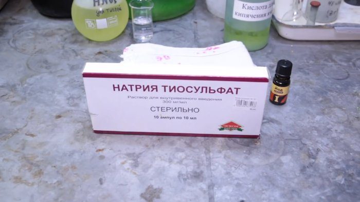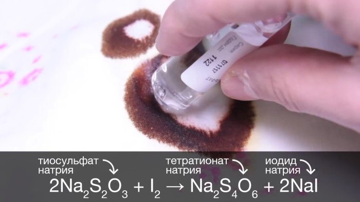 Пятна йода бесследно выводит аптечный препарат – натрий тиосульфат.