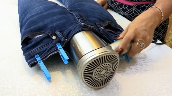 Иногда нужно срочно высушить одну конкретную вещь, и здесь придёт на помощь фен. Достаточно разместить нужную одежду горизонтально — например, на гладильной доске — и включить фен. Просушивать стоит равномерно, периодически разворачивая вещь, и также уделять внимание внутренней, изнаночной стороне.