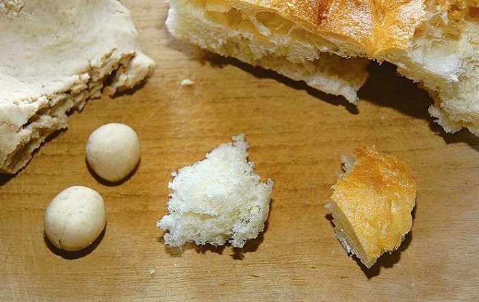 Сделайте шарики из хлебного мякиша.