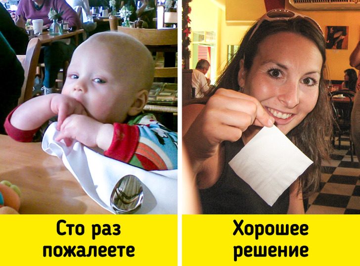 Тарелки и столовые приборы могут быть не такими уж чистыми. Дело в том, что в некоторых заведениях воду в раковинах и машинках не меняют целый день, поэтому посуда после мытья все равно остается грязной. Так что лучше захватить приборы с собой или попросить официанта выдать вам набор пластиковой посуды.