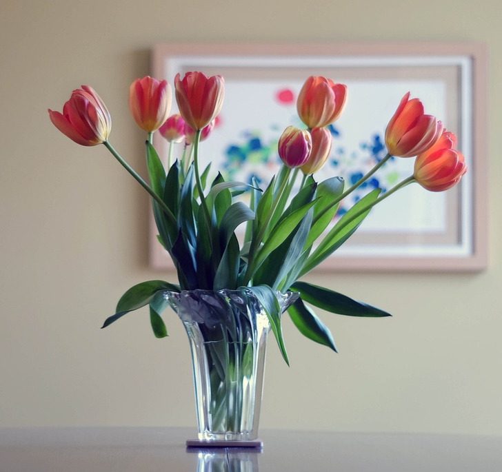Это может показаться очевидным, но свежие цветы поднимут ваш интерьер на новый уровень. Такой акцент мгновенно добавит жилищу роскоши. При этом необязательно тратить много денег на эту статью расходов. Летом можно собрать букет полевых цветов, а в холодное время года отдать предпочтение сухоцветам.