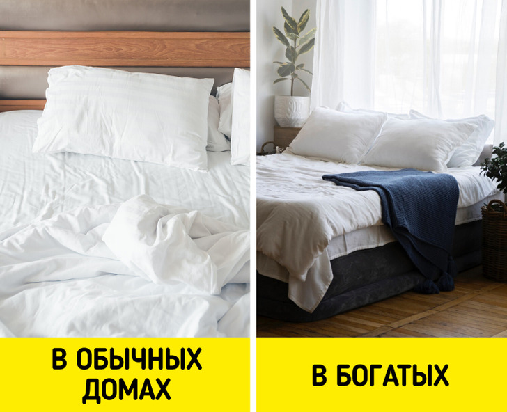 Тут принцип такой же, как и с полотенцами, которые сразу ассоциируются с классным дорогим отелем. К тому же белый цвет довольно практичный. Простыни можно без зазрения совести отбеливать, кипятить и стирать в очень горячей воде. А еще можно чаще менять наволочки и вместо тех, которые ждут стирки, брать тоже белые, но из другого комплекта — разницы видно не будет.