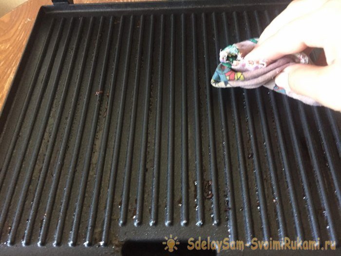 Шаг 3. Протереть пластины гриля, периодически промывая салфетку в проточной воде.