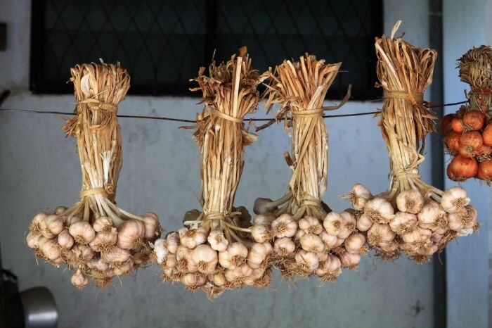 Лучше всего сохранить свежесть лука, чеснока и лука-шалота можно в сухом и неотапливаемом помещении, таком как чулан или подвал. Прежде чем уложить их на хранение, необходимо высушить овощи в течение примерно двух недель на хорошо проветриваемом месте. После этого их можно связать в пучки или поместить в сетчатые мешки для подвешивания.