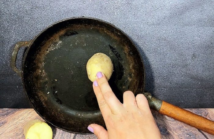 Картофель уберет следы ржавчины с чугунной сковороды.