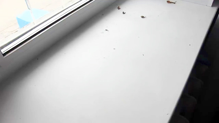Если смесь сухая и начинает царапать, подоконник можно сбрызнуть водой из пульверизатора.