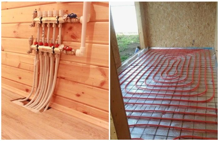 Водяной теплый пол. Установка труб — они проводятся в соответствии с проектом, укладываясь в зигзагообразном или улиточном порядке для равномерного прогрева. Подключение к отопительной системе осуществляется через трубы, которые соединяются с коллектором, отвечающим за регулирование подачи горячей воды. После этого следует провести тестирование системы на предмет утечек и правильного функционирования, прежде чем заливать стяжку.