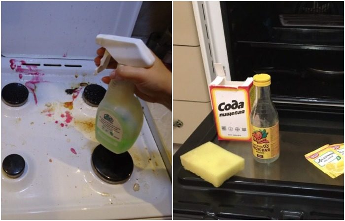 • для чистки застарелых пятен, например, на дверце микроволновки, духовки или кофеварки, используйте содовый раствор или смешайте воду с лимонной кислотой – оба средства будут одинаково эффективны;