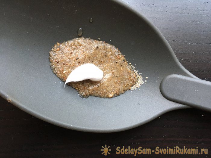 5. Густо намазать мыльно-песчаную смесь на пятно.