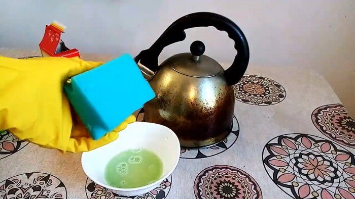 На чайнике или кастрюле образовывается стойкий нагар, который практически невозможно смыть. Приготовив это средство, от стойких пятен можно избавиться полностью почти без усилий.