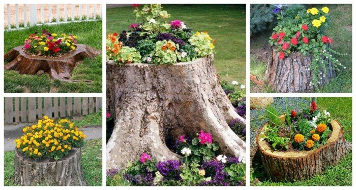 Креативные цветочные клумбы из пня.
