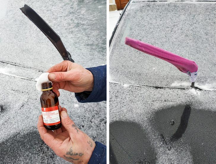 Многие поднимают дворники вверх на ночь, чтобы они не примерзли к лобовому стеклу. Перед этим рекомендуется протереть щетки спиртом для лучшего результата. Кроме того, можно взять старые носки и надеть их на дворники, чтобы предотвратить образование льда.