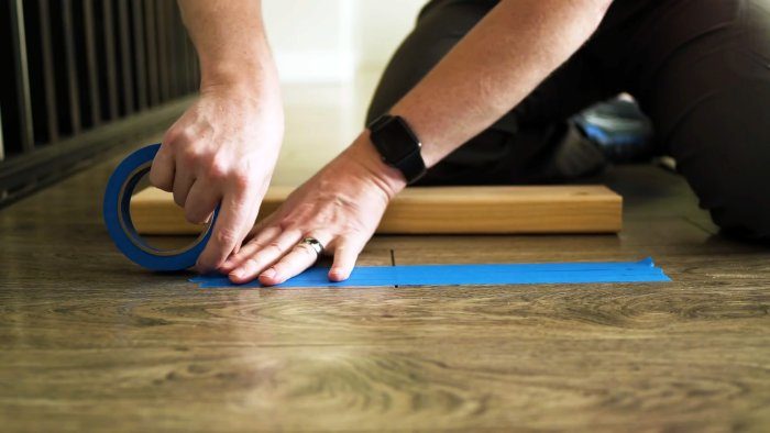9. Убираем щели на ламинате с помощью малярной ленты