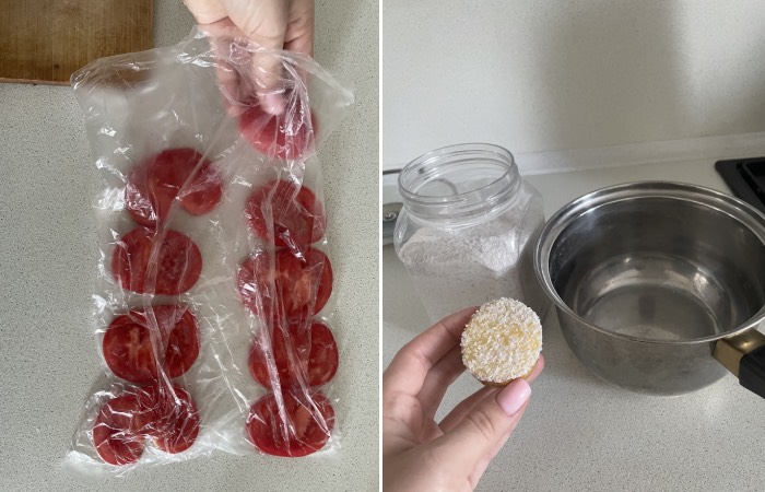 Для того чтобы томаты не потеряли свою целостность и были готовы стать украшением вашего блюда, необходимо замораживать их правильно. Для этого сначала нарежьте овощ на кружочки. После чего их необходимо аккуратно разместить по пластиковому пакету, рядами. В таком положении и отправляем их в морозильную камеру. Перед приготовлением, вы сможете отрезать нужное количество кружочком и аккуратно разморозить их при комнатной температуре.