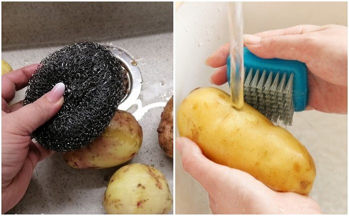 Поэтому вместо того, чтобы тратить время на удаление кожуры, просто тщательно вымойте овощи пол проточной водой. А если этого оказалось недостаточно, пройдитесь по поверхности плодов металлической губкой, чтобы полностью устранить все загрязнения.