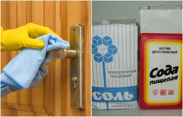 Хитрость 1: Протирайте ручки раствором из соли и соды