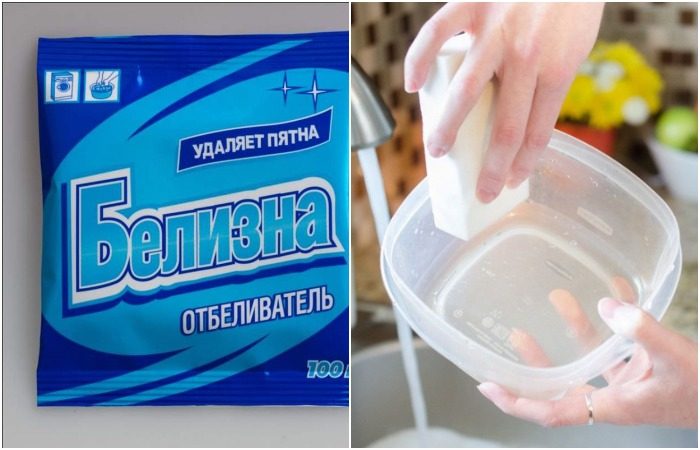 Не самый экологичный вариант, который, к тому же, вряд ли справится с жирами. Но для удаления некоторых пятен и дезинфекции поверхности хлорный отбеливатель отлично подойдет. Налейте в посуду 200 миллилитров воде, добавьте одну столовую ложку хлорки, подождите один час и тщательно помойте контейнер (лучше всего это делать в перчатках). Обратите внимание, что отбеливатель нельзя использовать, если на посуде есть царапины – вымыть его из микротрещин не получится.
